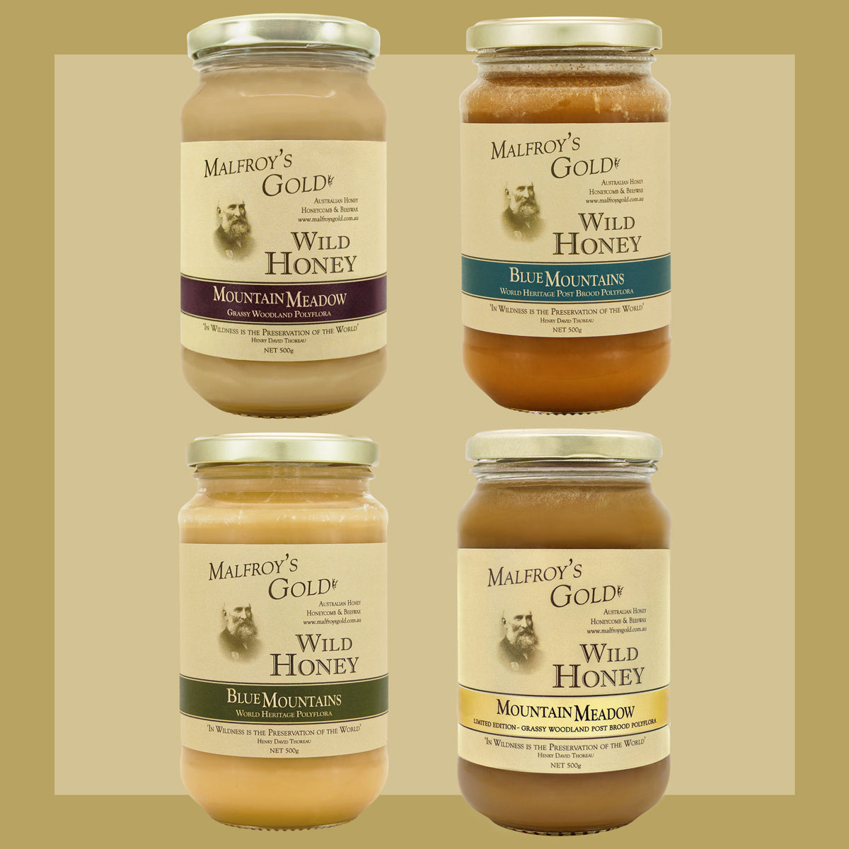 This pack features 4 x 500g jars of Wild, biodynamic honey harvested from bee-friendly Warré hives in the Blue Mountains and Central Tablelands, NSW Australia.